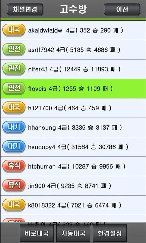 네트워크 사용량낮음 (대국 정보 교환 및 랭킹 업데이트 시에만 사용)